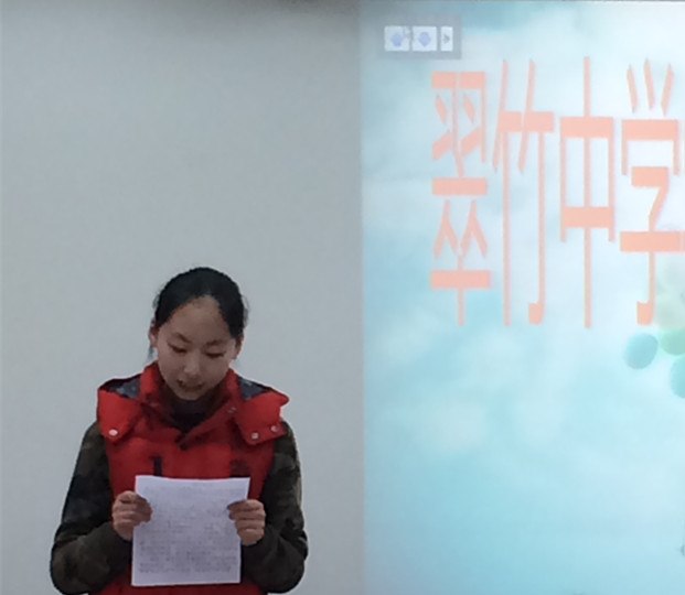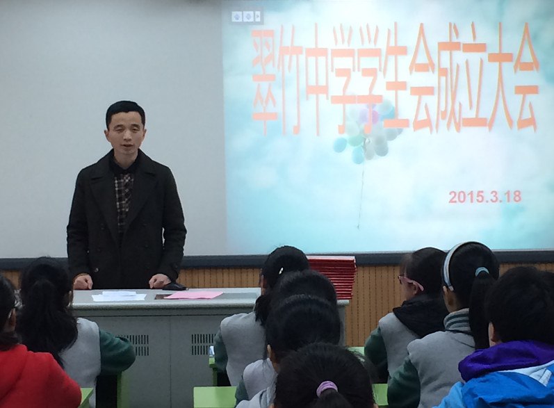 绽放热情,梦想起航 ------记常州市翠竹中学第一届学生会成立 2015年3月18日下午第三节课,虽然天空飘着春雨,但翠中演播室里却温暖一片,今天七八年级的部分师生齐聚这儿,召开常州市翠竹中学学生会成立大会。 随着主持人的宣布,常州市翠竹中学第一届学生会大会正式开始。 在今天二月份,我校举行的优秀学生干部培训班活动中,涌现了一大批有才华的学生,他们热情洋溢、有德有才,为了给这批孩子一个更高、更好地发展平台,学校决定成立第一届学生会,吸收这些优秀的同学成为学生会成员。会议开始,首先由我校路书记隆重宣读了第一届15位学生会成员名单,其中5位同学荣幸加入学生会核心组成员。热烈的掌声,是对他们成功的肯定;耀眼的奖状,是对他们今后的鼓励;自信的笑容,完美诠释了他们的喜悦…… 是金子总会发光,在同学们的背后,更有一批无私奉献的老师。接下来,学生会核心组成员给指导老师发聘书,作为学子的引路人,他们将会用自己的心血共筑新的辉煌!其次,在我校学生会管理成员中,八七班贺滨冰同学以出色的工作水平及认真态度进行了就职演说,引起学生会全体成员的一致肯定。我们都坚信,我们会为学校付出自己的微薄之力。最后,可亲可近的吴校长对学生会提出了要求,希他望新成立的学生会成员能不断提升自己、承担责任,聚焦远方、面向未来,主人意识、领袖风采,制定制度、传承文明,并从学生会的意义,如何更好的发展,我们的未来等几个方面进行了详细的阐述,再次为学生会成员引领了正确的道路。 热情绽放,梦想起航,在年轻的学生会带领下,我们会抬起年轻的面庞,挥动有力的翅膀,一起奋发努力,一起行进!