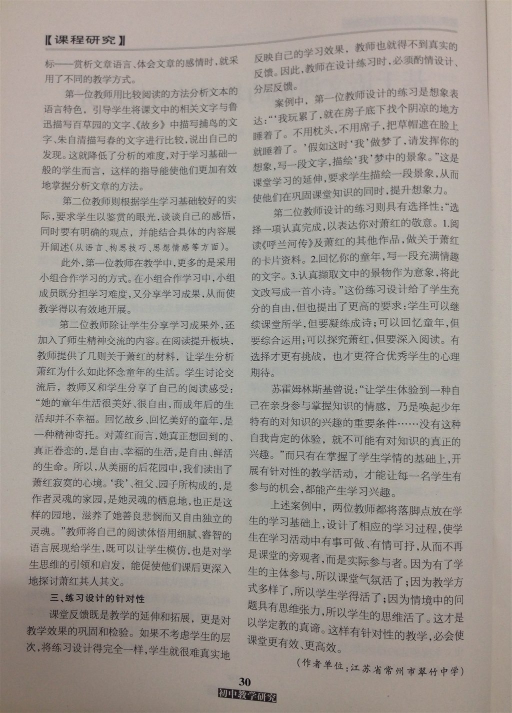 陈丽:《基于语文课例的教学针对性研究》刊于《初中教学研究》