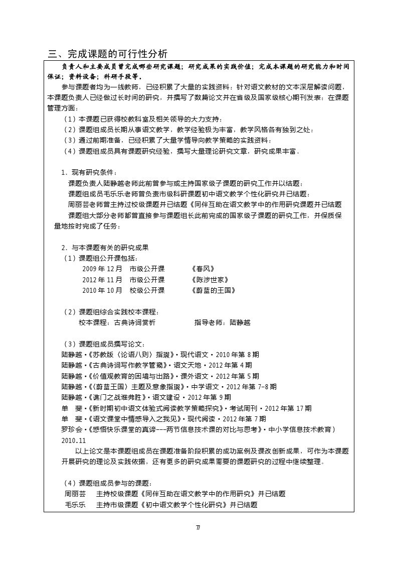 《语文文本深层解读与学情导向之间的矛盾研究》课题评审书