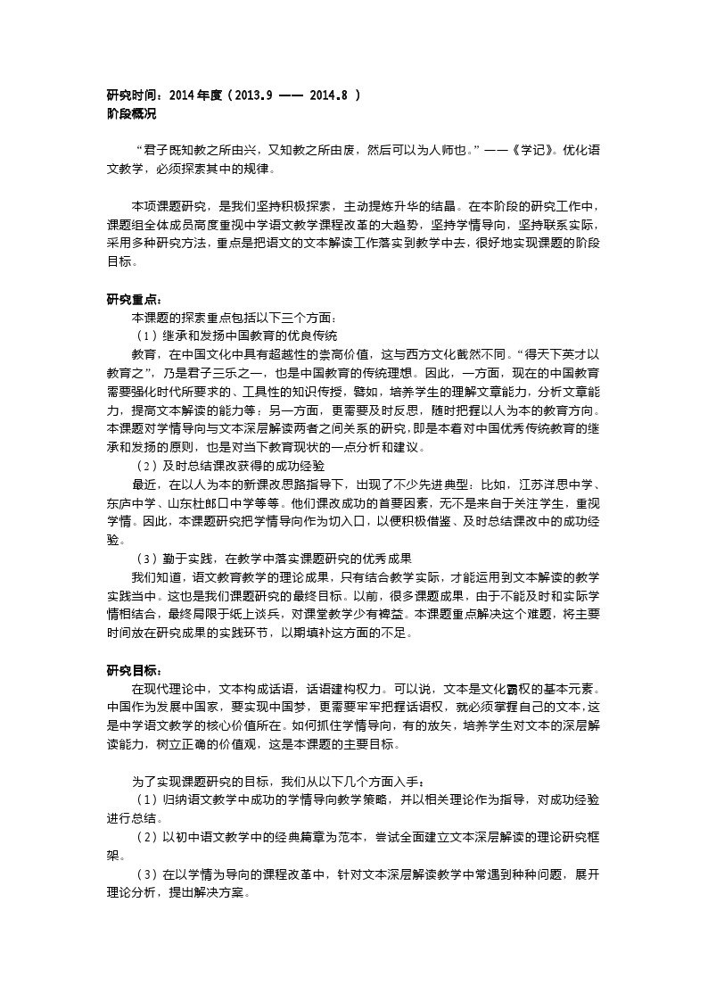 《语文文本深层解读与学情导向之间的矛盾研究》年度总结