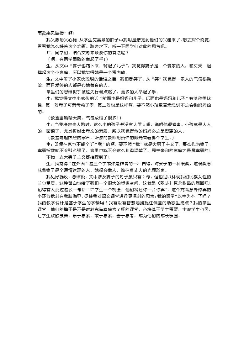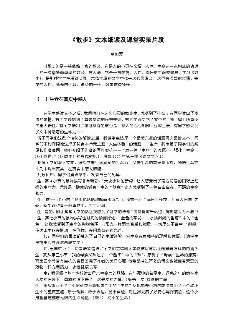 【章丽芳】【散步文本细读及课堂实录片段】